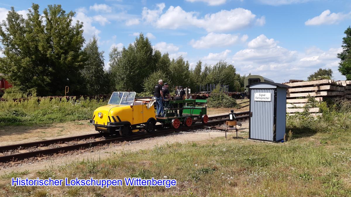 Sie ziehen den Schienentrabi gleich mit zum Lokschuppen.