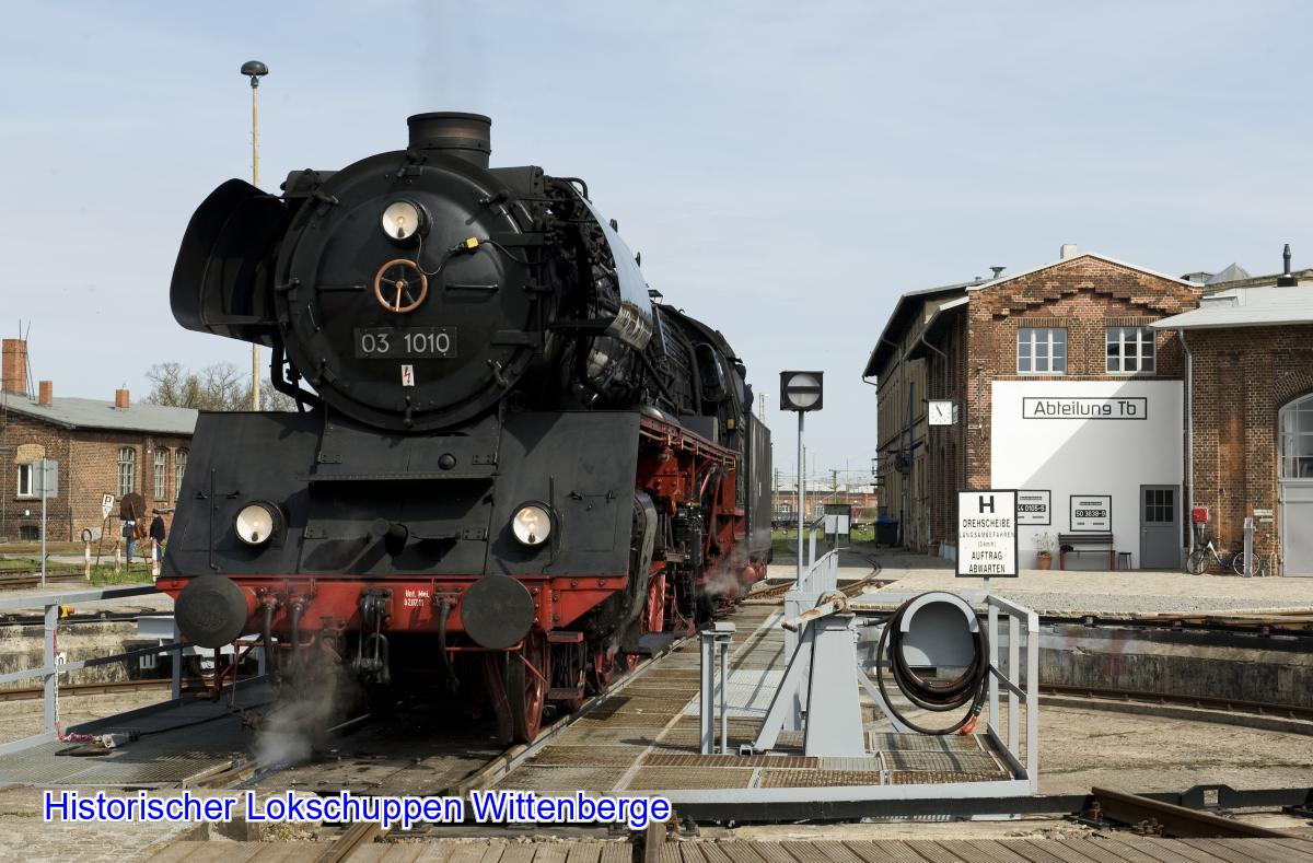 ![]() Vor genau 10 Jahren besuchte uns die Schnellzugdampflok 03 1010 auf dem Weg nach Halle, um ihre Wasservorräte zu ergänzen. Die Lok wurde 1941 gebaut und war zuletzt bei der Reichsbahn-Versuchsanstalt Halle eingesetzt, bevor sie in den Bestand des Verkehrsmuseums der Deutschen Bahn aufgenommen wurde. Sie war bis 2019 betriebsfähig. |