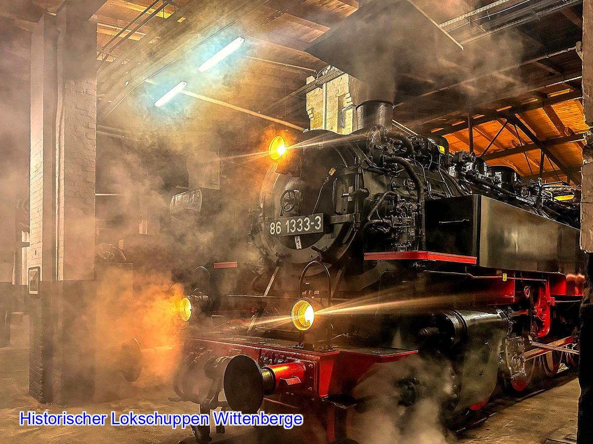 So auch im Bw Wittenberge. Allerdings hüllt sich hier die Dampflok 86 1333-3 der Press in ihren eigenen Nebel und schafft so diese stimmungsvolle Atmosphäre im Lokschuppen.