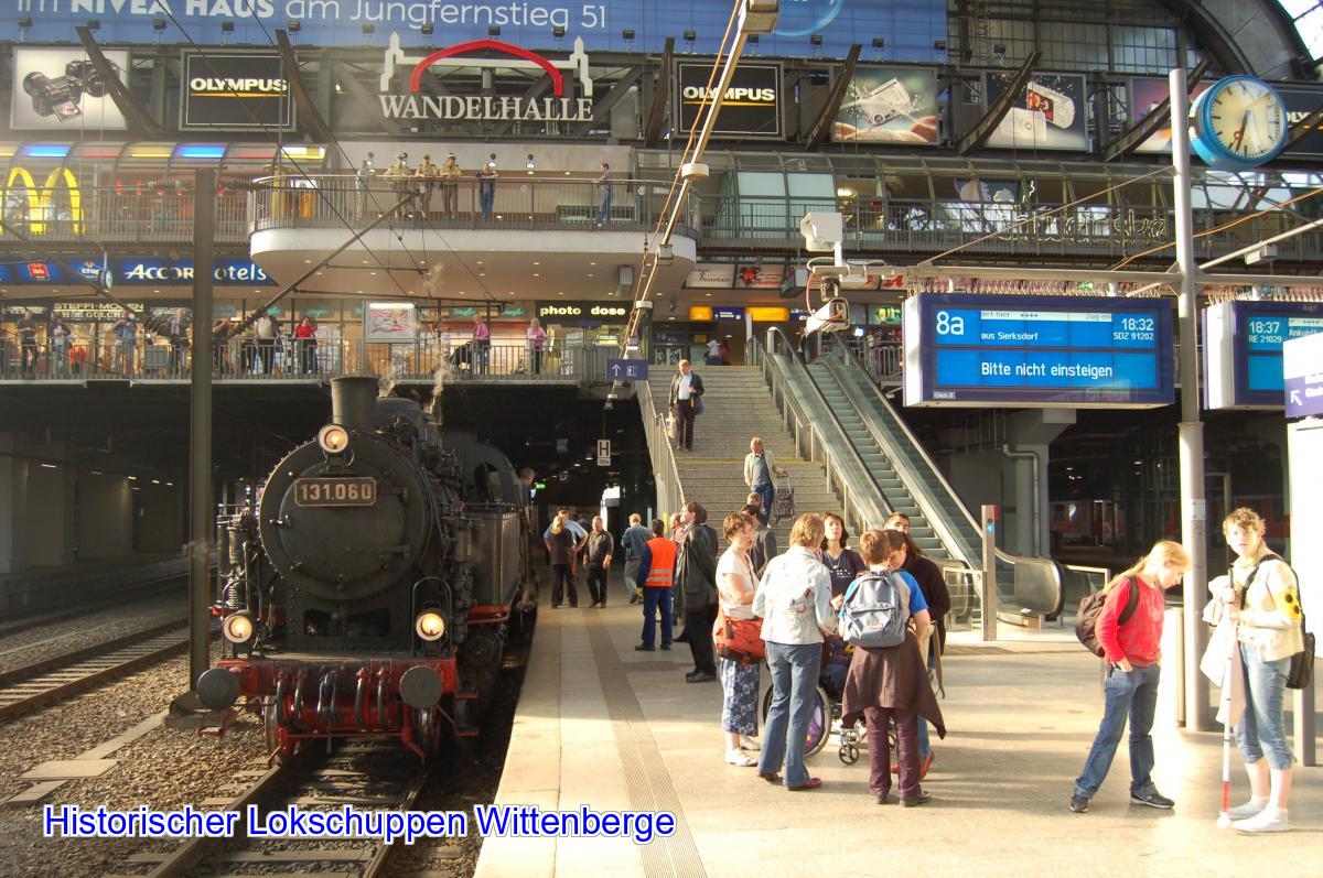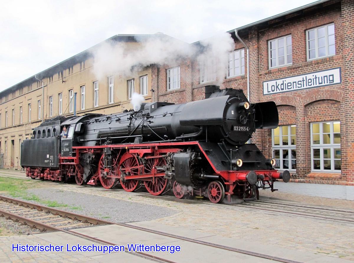 Nach Inbetriebnahme unseres Museums sprach sich schnell auch unter den Lokbetreibern herum, dass Wittenberge wieder über die notwendige Infrastruktur zur Versorgung von Dampflokomotiven verfügte. So besuchte uns am 18.8.2013 die Schnellzuglokomotive 03 2155. Der edle Renner gehört der Firma WFL und ist auch heute noch für Sonderfahrten verfügbar.