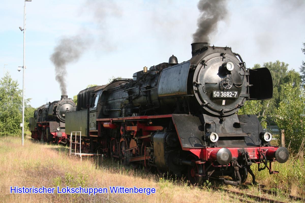 Am 14.6.2009 sonnten sich unsere beiden damals betriebsfähigen Dampfloks der Baureihe 50 auf dem Gleis 66 am Salzwedeler Bahnhof.