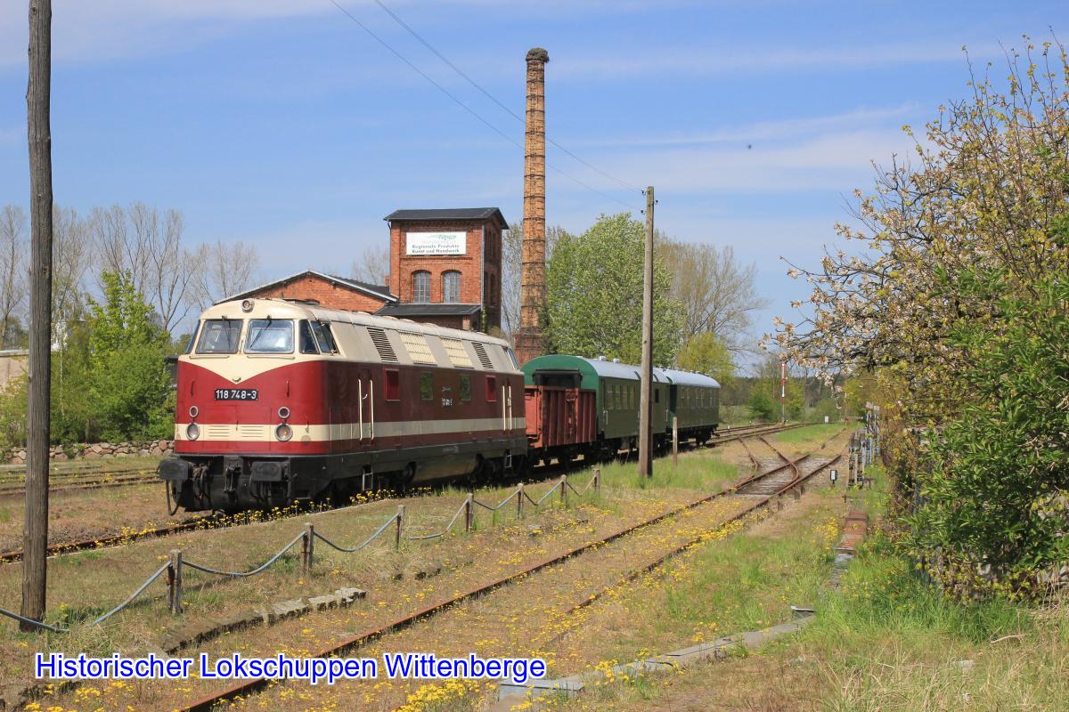 Am 2.5.2015 verabschiedeten wir unsere Diesellok 118 748 aus dem aktiven Dienst, weil ihre Streckenzulassung aufgrund auslaufender Untersuchungsfristen in der Woche darauf endete. Aus diesem Grund veranstalteten wir eine Fotosonderfahrt, die zunächst von Wittenberge nach Karow, dann nach Putlitz und dann wieder nach Wittenberge führte. Das Bild entstand im Bahnhof Ganzlin.