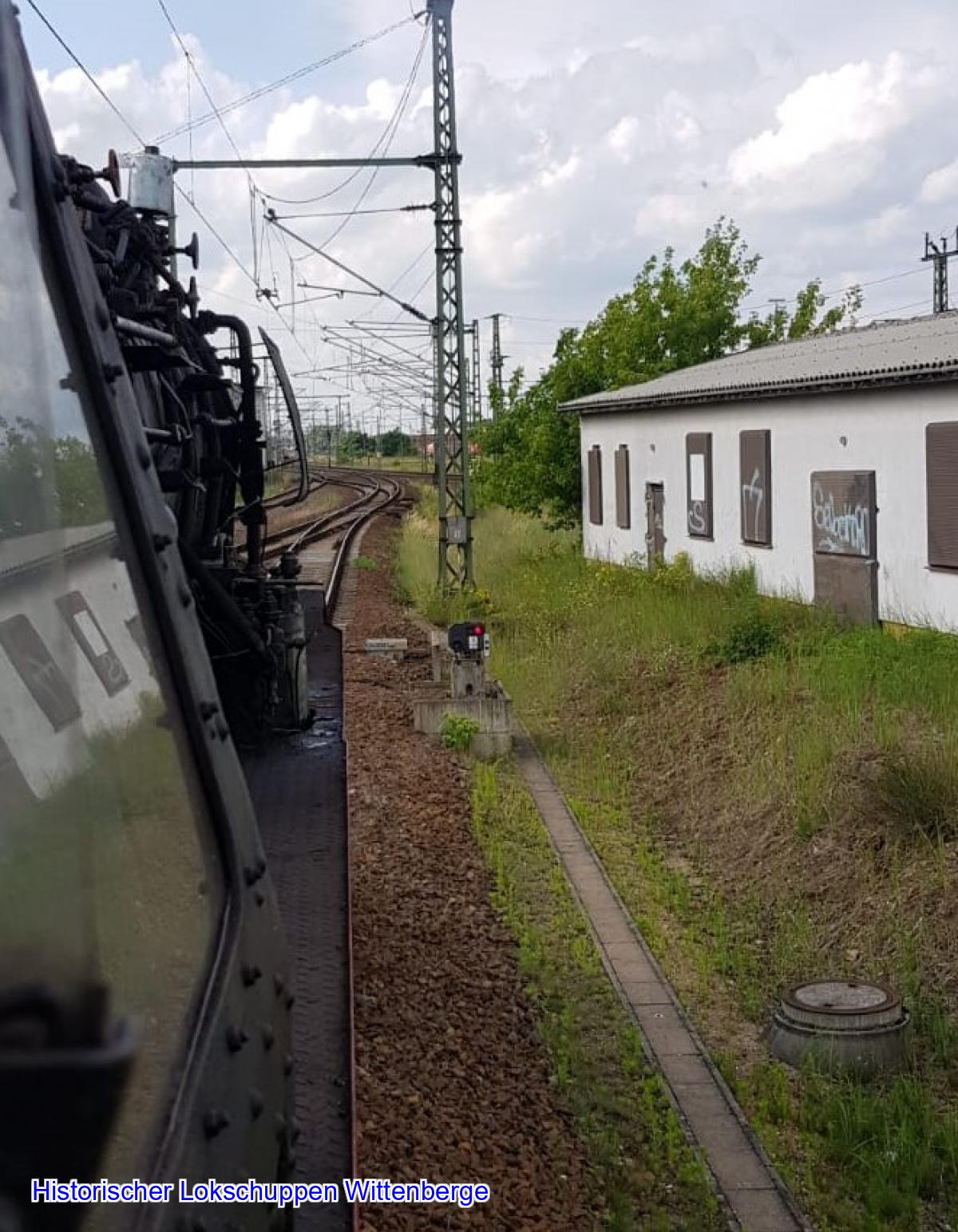 Am 5.7.2020 kehrten wir mit 50 3570 von einer Rangierfahrt aus dem Wittenberger Hafen zurück. An der Einfahrt auf die Hauptbahn zum Hauptbahnhof Wittenberge mussten wir am Rangiersignal auf die Vorbeifahrt eines anderen Zuges warten.