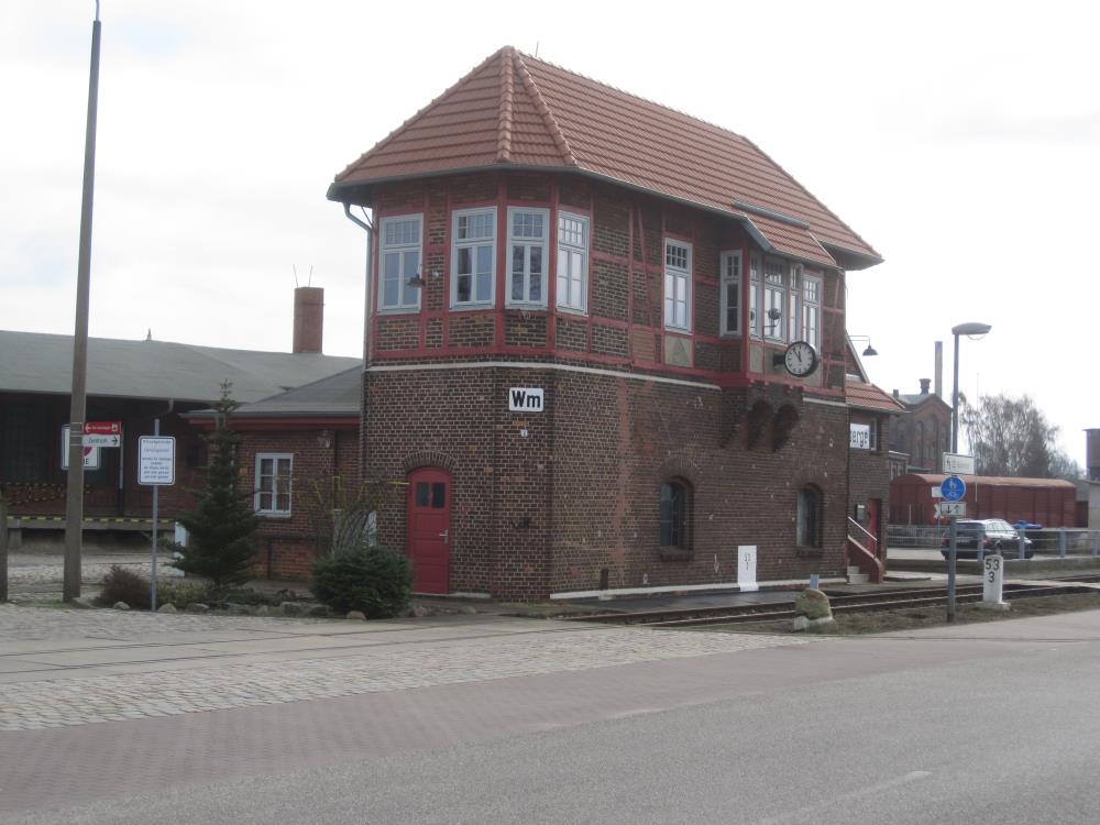 WM steht für „Wittenberge Mitte“. Es ist eines von ehemals fünf Stellwerken auf dem Bahnhof Wittenberge und ist als einziges davon erhalten.