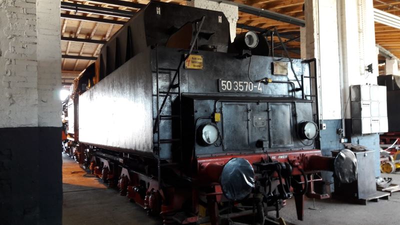 50 3570-4 durch. Damit der „amtliche Stempel“ für die Durchführung der Untersuchung gegeben werden kann, müssen alle Teile an der Lok einwandfrei funktionieren. Da das beim Tender der Lok, also dem „Anhängsel“, in dem die Betriebsstoffe mitgeführt werden, noch einige Arbeiten mit sich zieht, wurde dieser Tender mit dem der Dampflok