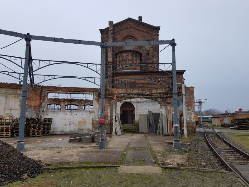 Auch im Außengelände gibt es Bewegung. An den Fragmenten des Lokschuppen 1 wird in der kommenden Woche ein Baugerüst errichtet, dessen Teile bereits angeliefert wurden. Fachfirmen beginnen dann mit der Sanierung der noch erhaltenen Mauern. Danach erhalten Teile des Gebäudes wieder ein Dach.