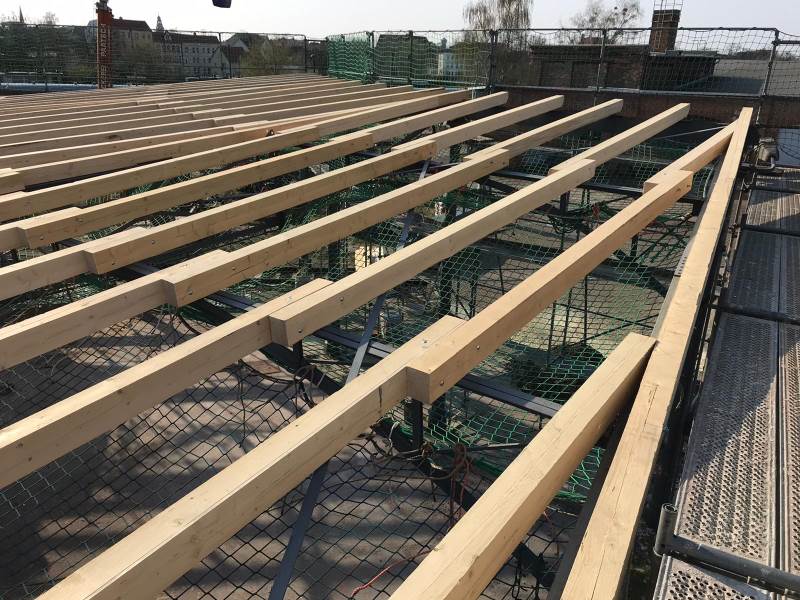 Obwohl die Arbeit pandemiebedingt nur sehr langsam vorangeht, freuen wir uns doch, ein paar sehenswerte Zwischenergebnisse präsentieren zu können. Erstens sind die Dacharbeiten an den Resten des Lokschuppens 1 nahezu abgeschlossen. Das Dach wurde in den letzten Tagen mittels einer Holzkonstruktion gedeckt und anschließend mit Dachpappe abgedichtet. Die Baugerüste sind weitgehend abgebaut. Lediglich an den Seiten werden in diesem Bauabschnitt noch ein paar kleine Restarbeiten durchgeführt.