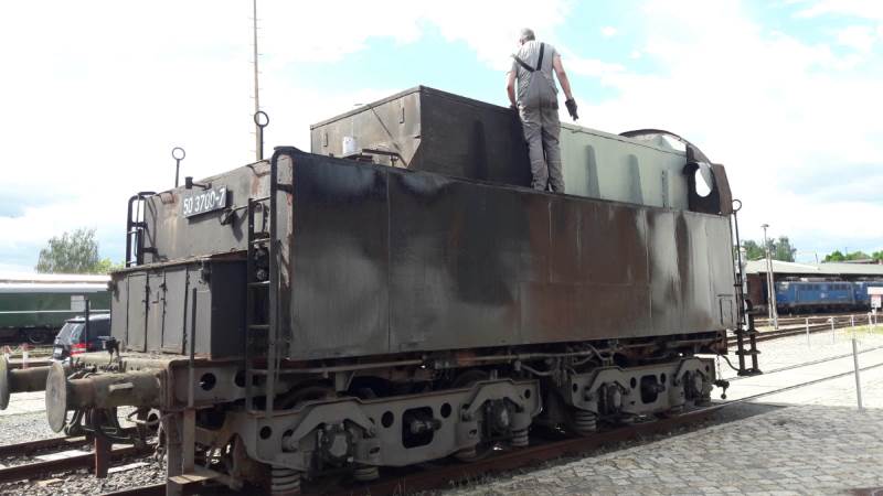 Fortschritte machte auch die Neulackierung des Tenders unserer Dampflok 50 3700 (Wir berichteten letzte Woche schon). Hier konnte der Kohlenkasten und der Wasserkasten auf der linken Seite neu lackiert werden.