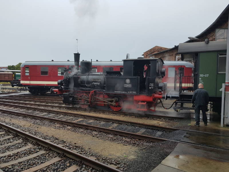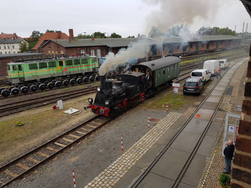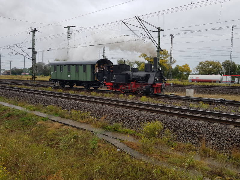 Nach kurzem Aufenthalt verkehrte ein Dampf-Anschlusszug, der die Wittenberger Hafenbahn befuhr.