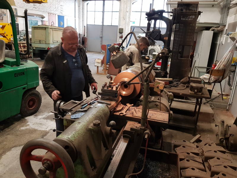 Da das Wetter am Samstag nicht so berauschend war, konzentrierten sich die weiteren Arbeiten eher im Lokschuppen. Hier war auch mal wieder die Drehbank in Betrieb.