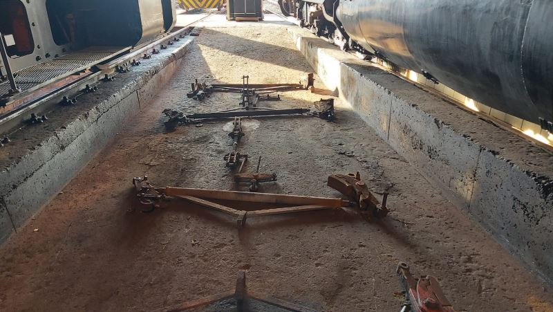 In der vergangenen Woche konnten wieder einige Arbeiten erledigt werden. So wurde das Bremsgestänge am Tender unserer Dampflok 50 3570 abgebaut, um einige bewegliche Teile aufzuarbeiten. Hier schaut der Kollege erst einmal, wie er am besten die Schrauben und Bolzen erreicht, die loszuschrauben sind.