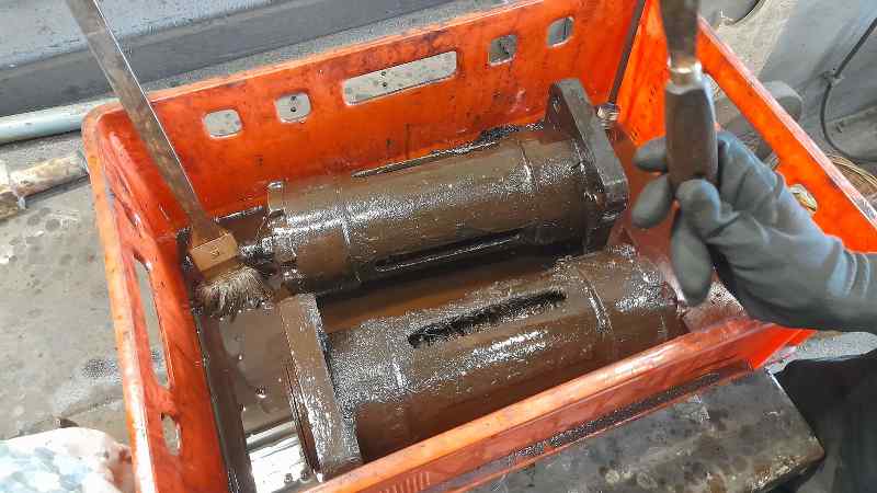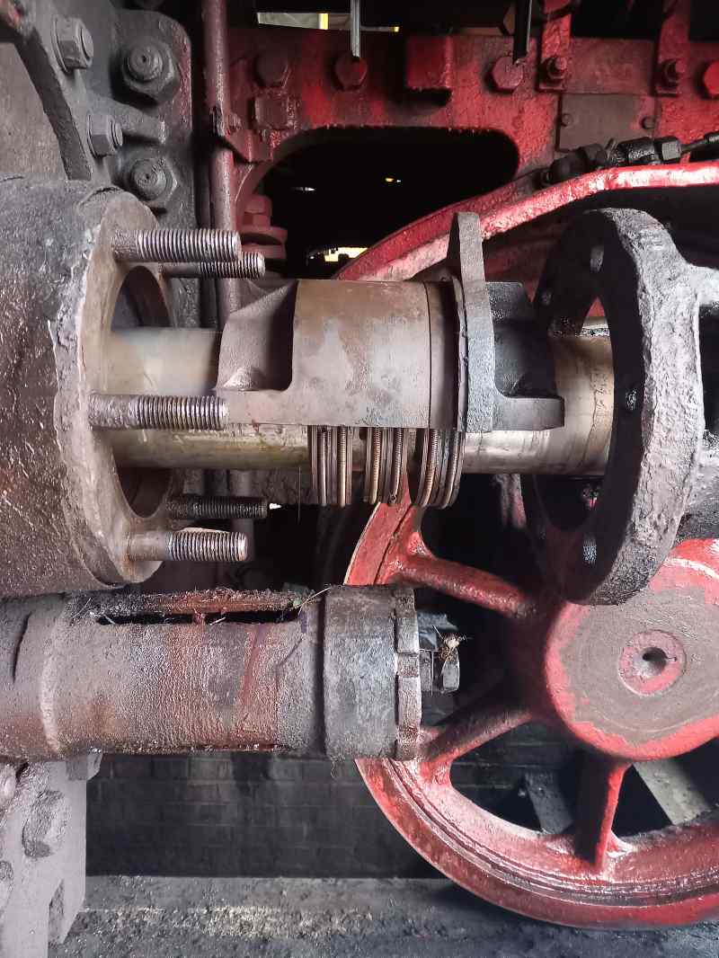 Weitere Unterhaltungsarbeiten standen an unserer Dampflok 50 3570 auf dem Programm. So wurden die Dichtungen geprüft, welche die Kolbenstangen gegen die Dampfzylinder abdichten geprüft und instand gesetzt. Bei den Dichtungen handelt es sich um metallene Ringe, die aus verschiedenen Segmenten bestehen, welche die Kolbenstangen umschließen. Diese Segmente werden durch Federn zusammengehalten, damit sie eng an den Kolbenstangen anliegen. Die Dichtwirkung nimmt mit der Zeit ab, weil sich zwischen den Segmenten Ölkohle ablagert und sich dadurch Spalte bilden.