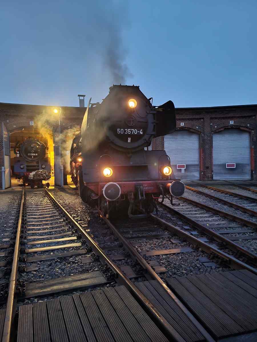 So wurde am frühen Mittwochmorgen also zunächst die kohlegefeuerte Dampflok 50 3570 angeheizt.
