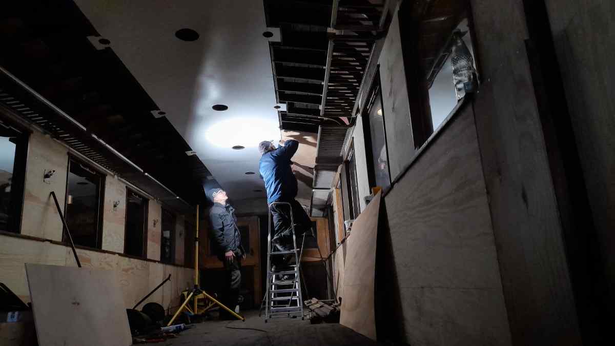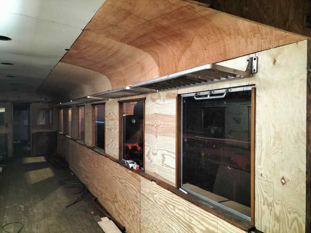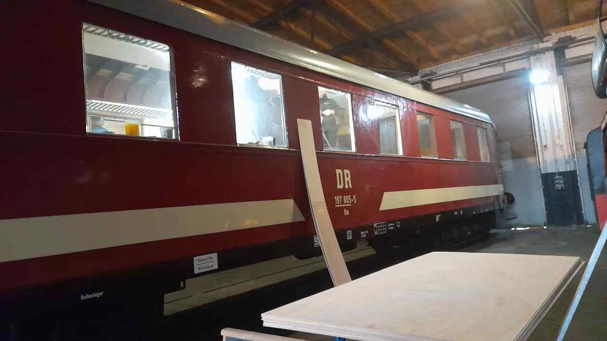 Mit deutlich sichtbaren Schritten ging der Innenausbau unseres Wagen 190 805 voran. Hier konnte die neue Deckenverkleidung aus Sperrholz angebracht werden.