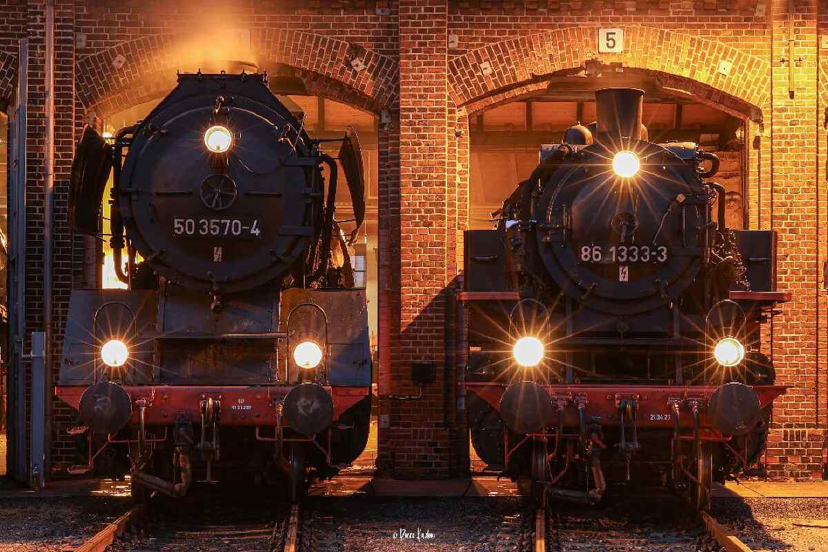 Und als ein wenig Ruhe einkehrte, ruhten sich unsere stählernen Hauptdarsteller im Lokschuppen aus: