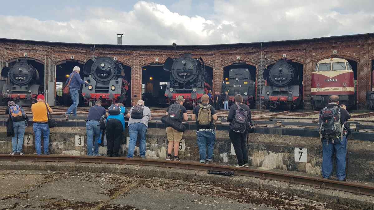 Erschöpft, aber überglücklich schauen wir auf das vergangene Wochenende zurück. Es war bisher sicher in jeder Hinsicht ein Spitzenerlebnis nicht nur für uns, sondern auch für unsere Besucher. So war der Samstag der Tag der Rekorde. Bei bestem Wetter besuchten uns gut 1.700 Menschen aus nah und fern, so viele wie noch nie an einem Tag. Das hatte wahrscheinlich seinen Grund darin, dass wir auch eine Superlative an Exponaten zu bieten hatten, von denen viele in Betrieb vorgeführt werden konnten. Insgesamt waren neben unseren eigenen Fahrzeugen vier auswärtige Dampfloks, drei Dieselloks, eine Elektrolokomotive und zwei Triebwagen zu bestaunen.