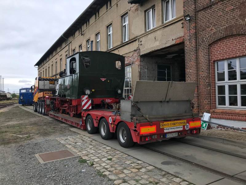 Auch in diesem Jahr ist unsere Dampflok "EMMA" auf der InnoTrans, der größten internationalen Fachmesse für Verkehrstechnik (18.–23.09.2018), in Berlin im Einsatz. Da die Maschine aus betriebstechnologischen Gründen nicht mit eigener Kraft überführt werden kann, wurde die Maschine am Donnerstag (13.09.2019) auf einen Spezialtieflader der in Schwarzenberg (Erzgebirge) ansässigen Spedition Arne Ehrig KG verladen und auf der Straße nach Berlin gebracht. Einen Tag später traf die Maschine wohlbehalten auf dem Messegelände am Berliner Funkturm ein. Am Montag (17.09.2018) wird "EMMA" von einigen Aktiven des "Historischen Lokschuppens Wittenberge" für den Einsatz auf der InnoTrans vorbereitet. Einen Tag später öffnet die Messe ihre Tore für das Fachpublikum. Die Besucher aus aller Welt haben dann die einmalige Möglichkeit, auf dem Führerstand einer historischen Dampflok mitzufahren. Am 22. und 23. September 2018 ist das Messegelände für alle großen und kleinen Eisenbahnfreunde geöffnet. Auch an diesen beiden Tagen steht "EMMA" unter Dampf. Anschließend wird die Maschine wieder mit einen Tieflader nach Wittenberge gebracht.
