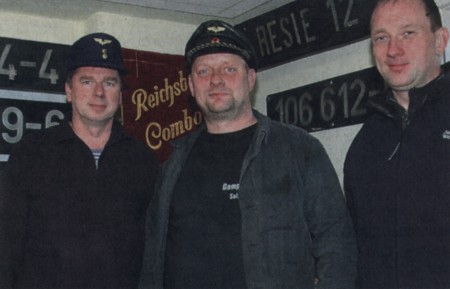 Thomas Koberstein (von links). Rocco Kadow und Maik Koslowski präsentierten historische Lokschilder.
