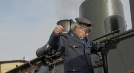 Lokführer Gernot Gattermann überprüft den Wasserstand bei der Lok Emma. Regelmäßig musste nachgefüllt werden.