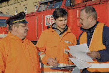Klaus Ludwig (l.) und Dirk Endisch (r.) bei der Protokollübergabe der beiden Loks.