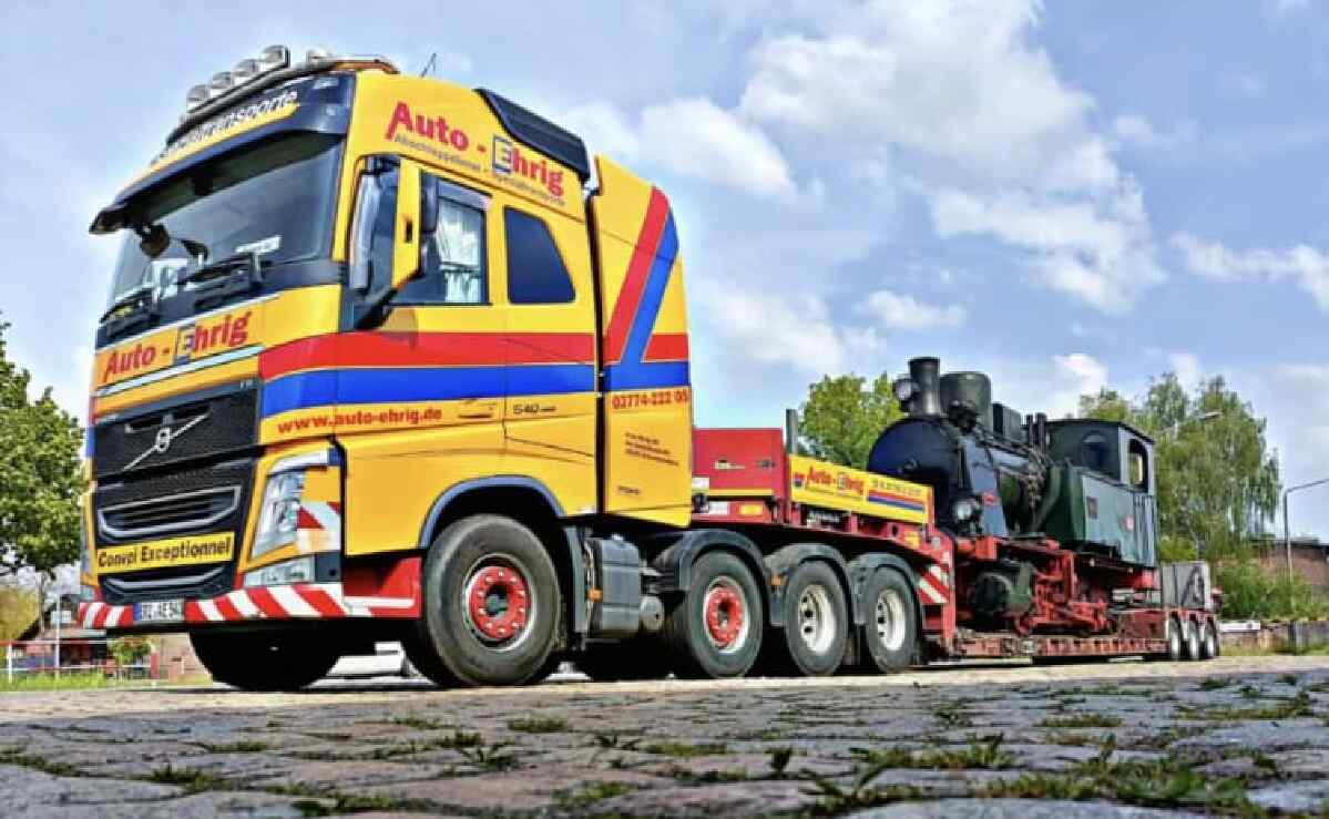 Um 8.30 Uhr setzte sich gestern der Tieflader mit der mehr als 30 Tonnen schweren Dame Richtung Berlin in Bewegung. Dort wird "Emma" bei der Messe "Innotrans", der weltweit größten ihrer Art für Eisenbahninfrastruktur und -fahrzeuge, erwartet. Wegen ihrer leichten und übersichtlichen Ausführung lässt sich "Emma" noch relativ leicht auch auf der Straße transportieren. "Das ist die günstigste Variante. Für die Schiene wäre sie zu langsam und würde quasi den ganzen Verkehr aufhalten", so Dirk Endisch vom Lokschuppen-Verein. Außerdem müsste ständig Wasser nachgefüllt werden, um die Lok fahrbereit zu halten. Bei der Messe soll das Gefährt zu Werbezwecken eingesetzt werden. "Dort wird sie einige Runden drehen", blickt Dirk Endisch voraus.