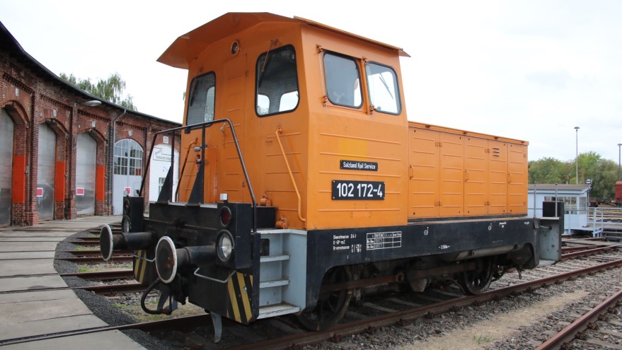 Zu diesem Zeitpunkt hatten die Maschinen, die seit dem 1. Januar 1992 als Baureihe 3121 bezeichnet wurden, erheblich an Bedeutung verloren. Bereits 1994 hatte die Deutsche Bahn AG (DB AG) mit der Ausmusterung der kleinen Dieselloks begonnen. Die letzten Exemplare hatten schließlich im November 2001 ausgedient. Die Diesellok 102 172 wurde 1970 mit der Fabrik-Nummer 265 072 in Babelsberg gebaut. Nach der Endabnahme am 31. Oktober 1970 wurde die Maschine dem Bw Reichenbach (Vogtland) zugewiesen. Dort wurde die Baureihe 1021 unter anderem von den Einsatzstellen Adorf, Falkenstein und Werdau für den Rangierdienst benötigt. Abgesehen von einem kurzen Gastspiel in Zwickau in den Jahren 1994/95 war die Maschine ausschließlich in Reichenbach (Vogtland) stationiert. Ende 2017 erwarb schließlich die Salzland Rail Service GmbH die Diesellok und ließ sie nun nach Wittenberge bringen. "102 172 ist derzeit nur fahrfähig, eine betriebsfähige Instandsetzung ist aber geplant. Wie lange das dauert, kann ich derzeit nicht sagen", so Dirk Endisch.