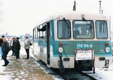 Das Ende einer Bahnstrecke: Am 31. Dezember 1995 begab sich die "Ferkeltaxe" auf Abschiedsfahrt von Salzwedel nach Dähre.