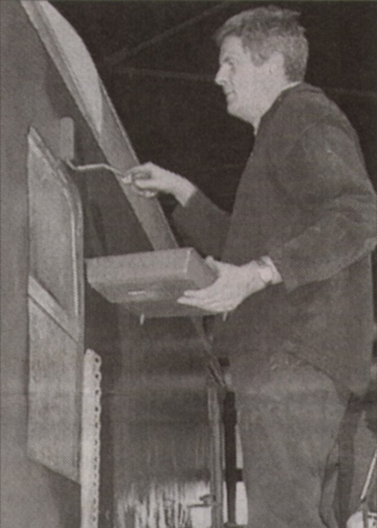 Vereinschef Burkhard Bohn strich am Sonntag die jüngste Neuerwerbung der Dampflokfreunde, einen Reichsbahnwaggon, mit original grüner Farbe an.